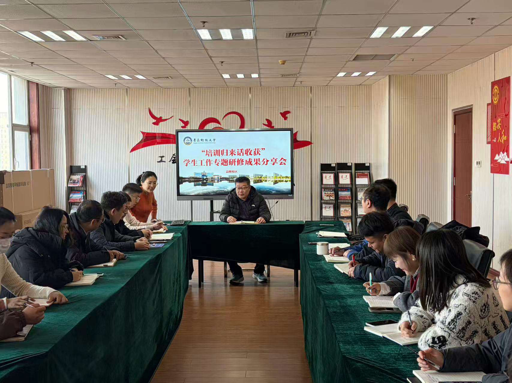 12月19日下午,高密校区在图书馆912会议室组织召开辅导员培训暨研修成果交流分享会。校区党委副书记王作辉出席会议,校区全体学工成员参加。