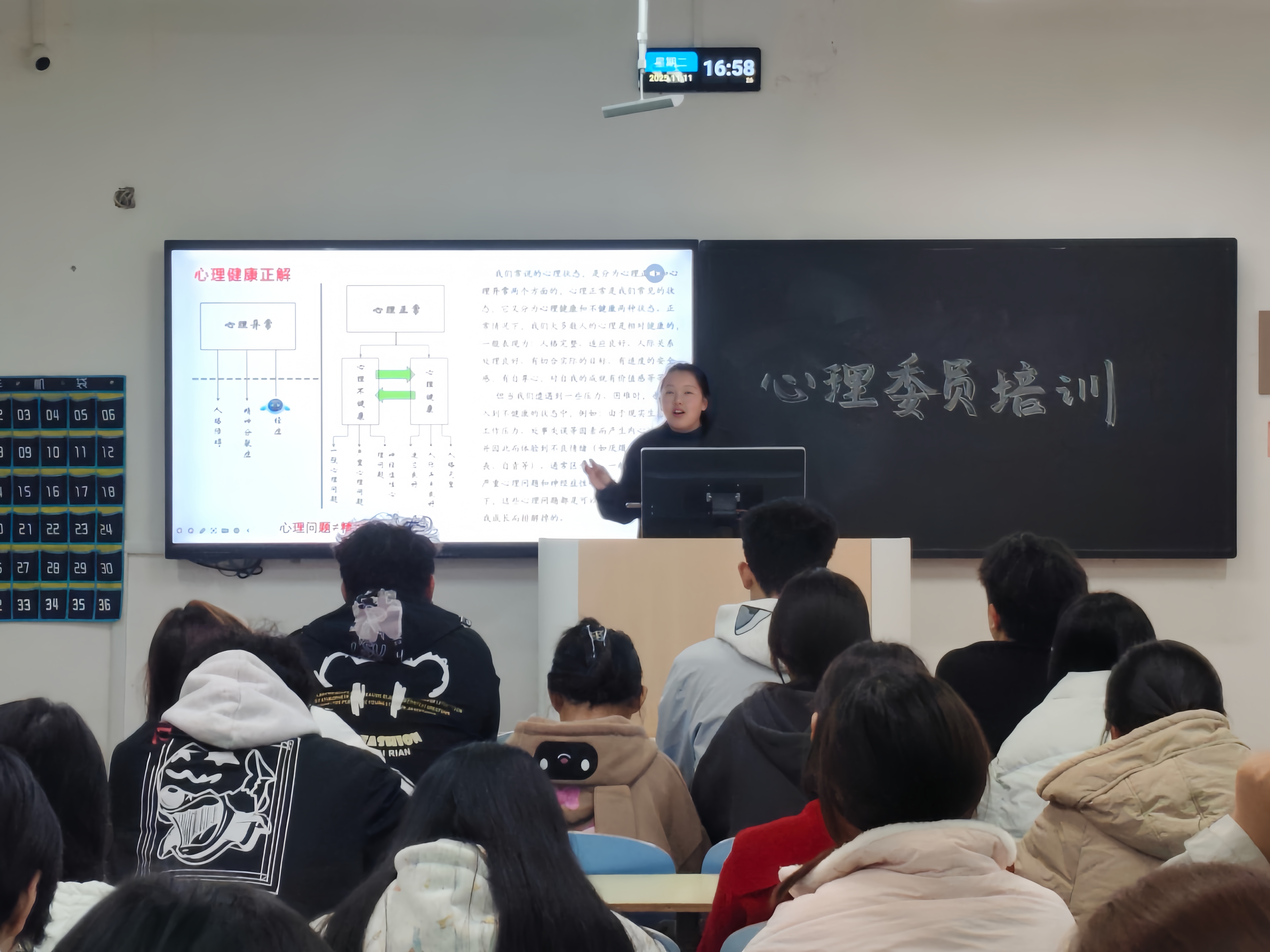 在心理委员培训中,李鹏飞(女)围绕心理委员的角色定位,结合案例与实践经验,详细讲解了心理危机的识别和初步干预方法,助力校园心理健康支持工作落地。最后,她以“有时去治愈,常常去帮助,总是去安慰” 诠释心理委员的核心使命,让朋辈心理关怀更具温度。