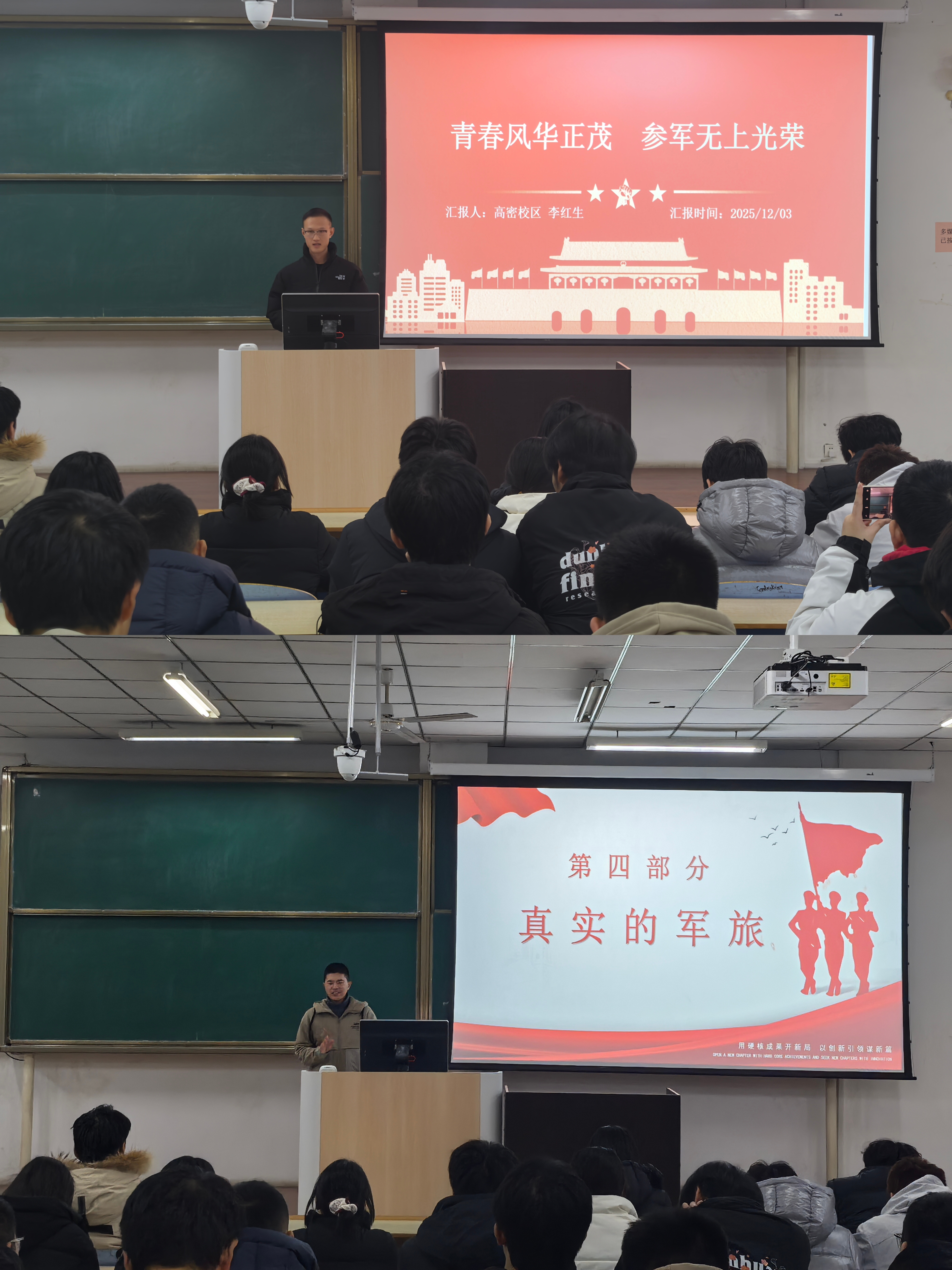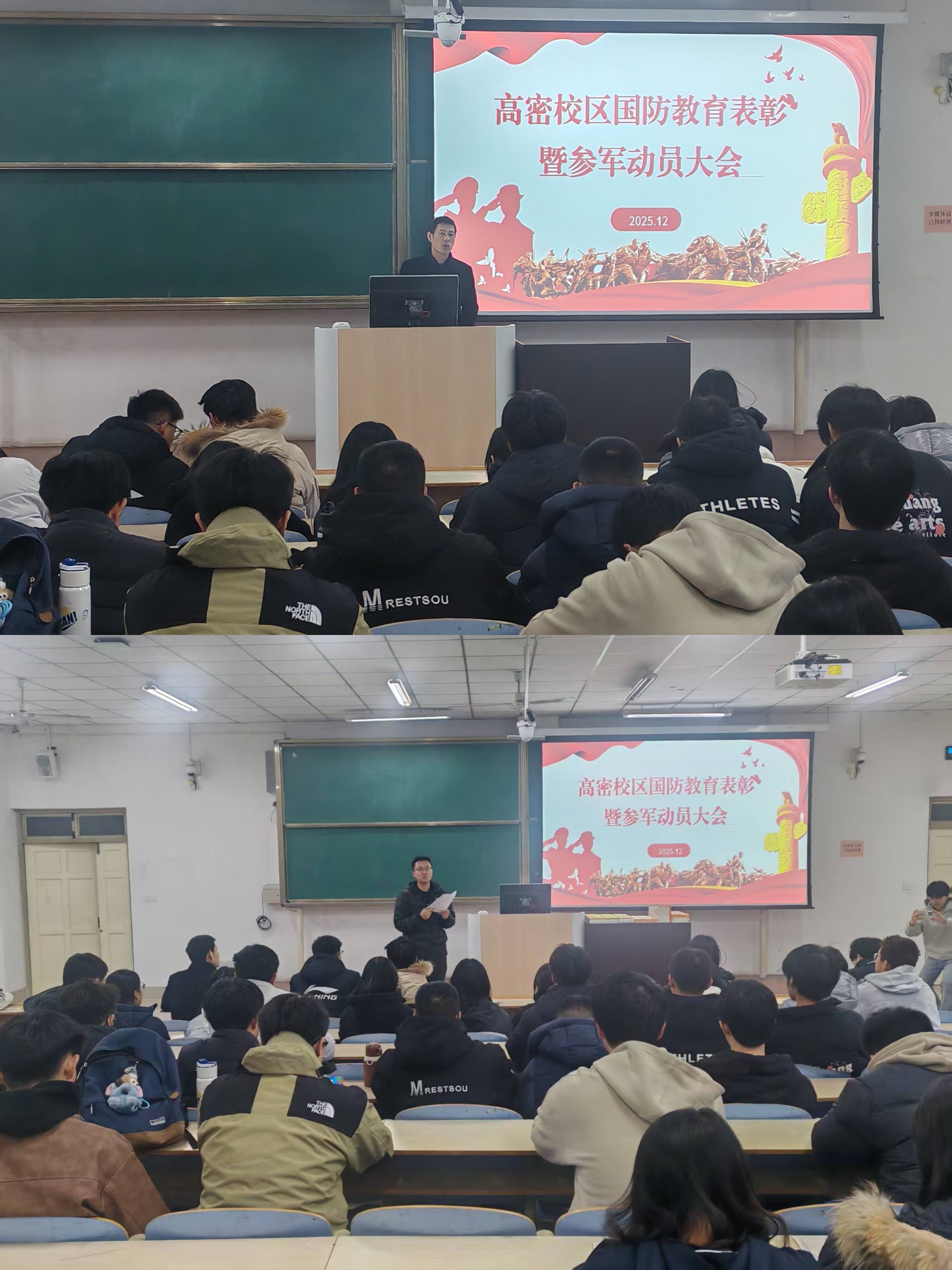 12月3日晚,高密校区在M1-125举行国防教育表彰暨参军入伍动员大会。会议由校区国防教育负责人范煜主持,学校“揭榜挂帅”预征预储项目负责人徐连基参加。